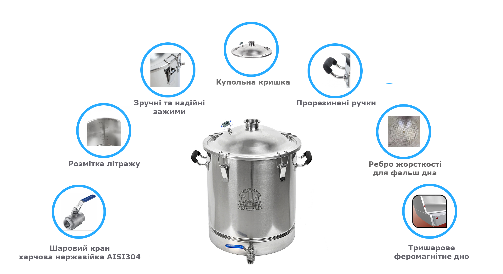 Перегінний куб (з клампом під тен) з купольною кришкою під кламп 2"